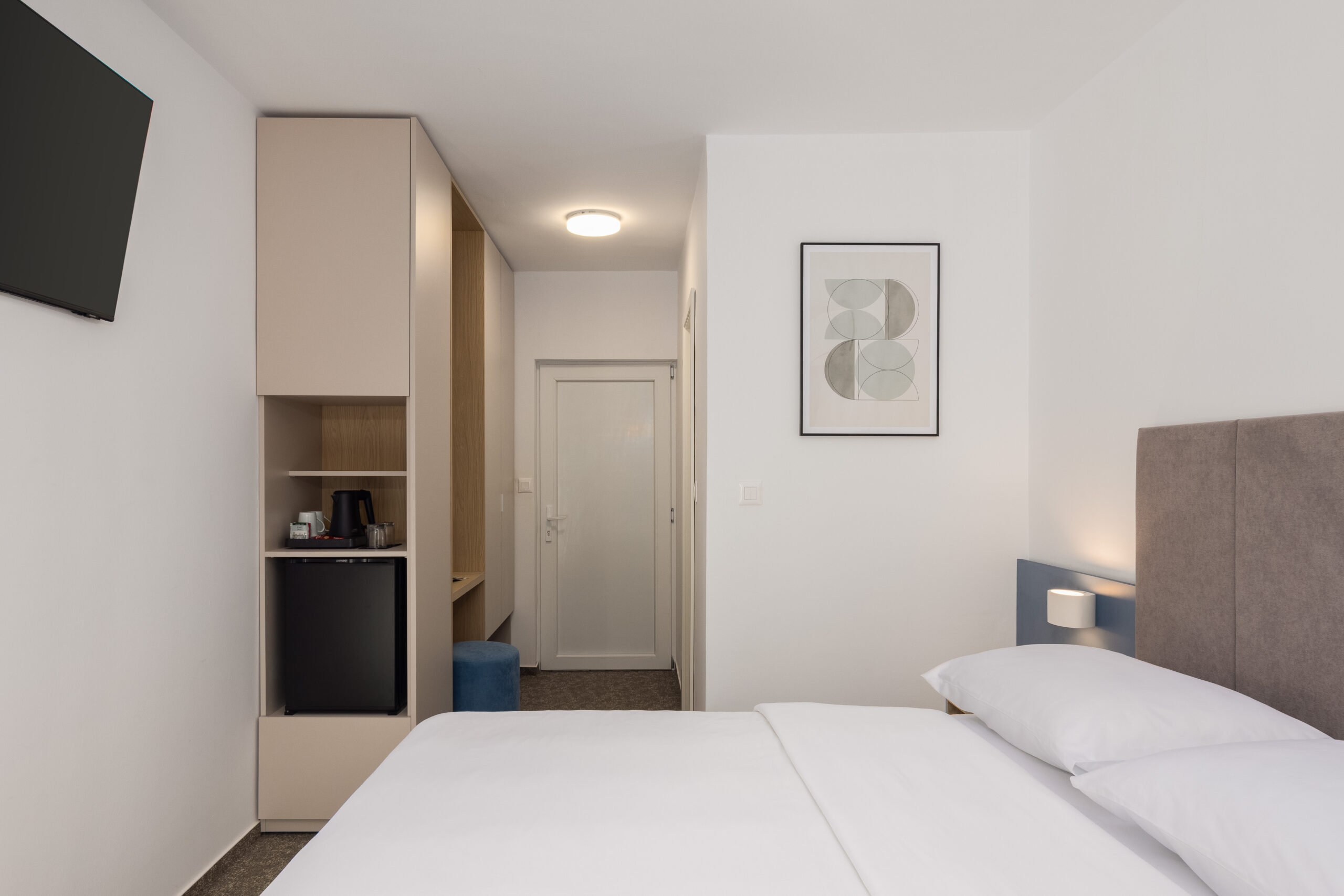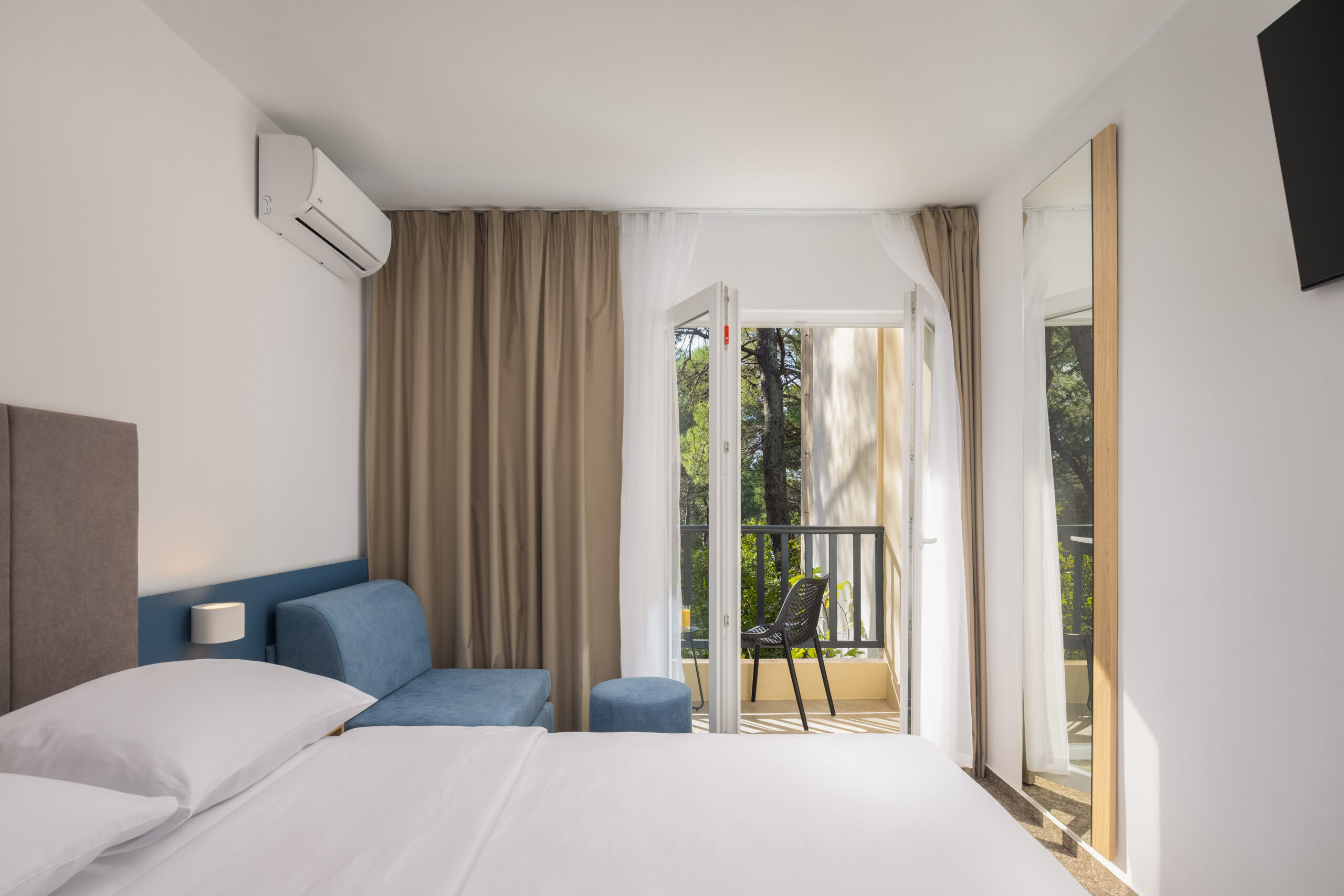 The Standard double room with an extra bed and balcony, annex offers comfortable accommodation for a relaxing stay, ideal for 1 to 3 adults or a combination of adults and children (up to 2 children, with a maximum age of 15). The renovated interior provides a pleasant and inviting atmosphere, while the double bed and the extra bed in the form of a small pull-out sofa offer added flexibility for a small family or a third guest. The balcony provides a welcoming outdoor space, and the proximity to the beach adds extra value for a complete and enjoyable holiday experience.